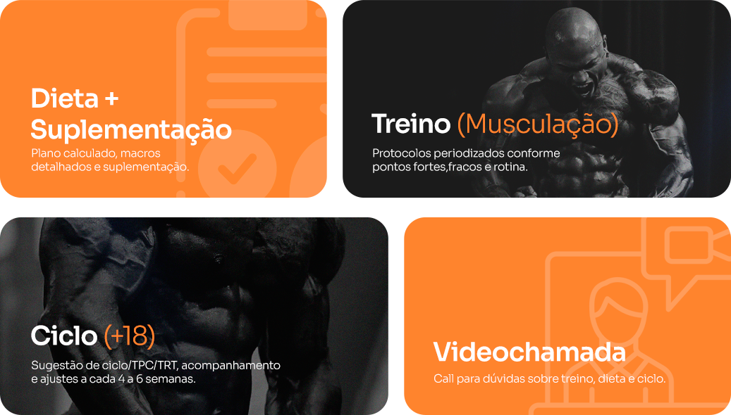 Tudo 100% personalizado com base no seu corpo, rotina e objetivo.
